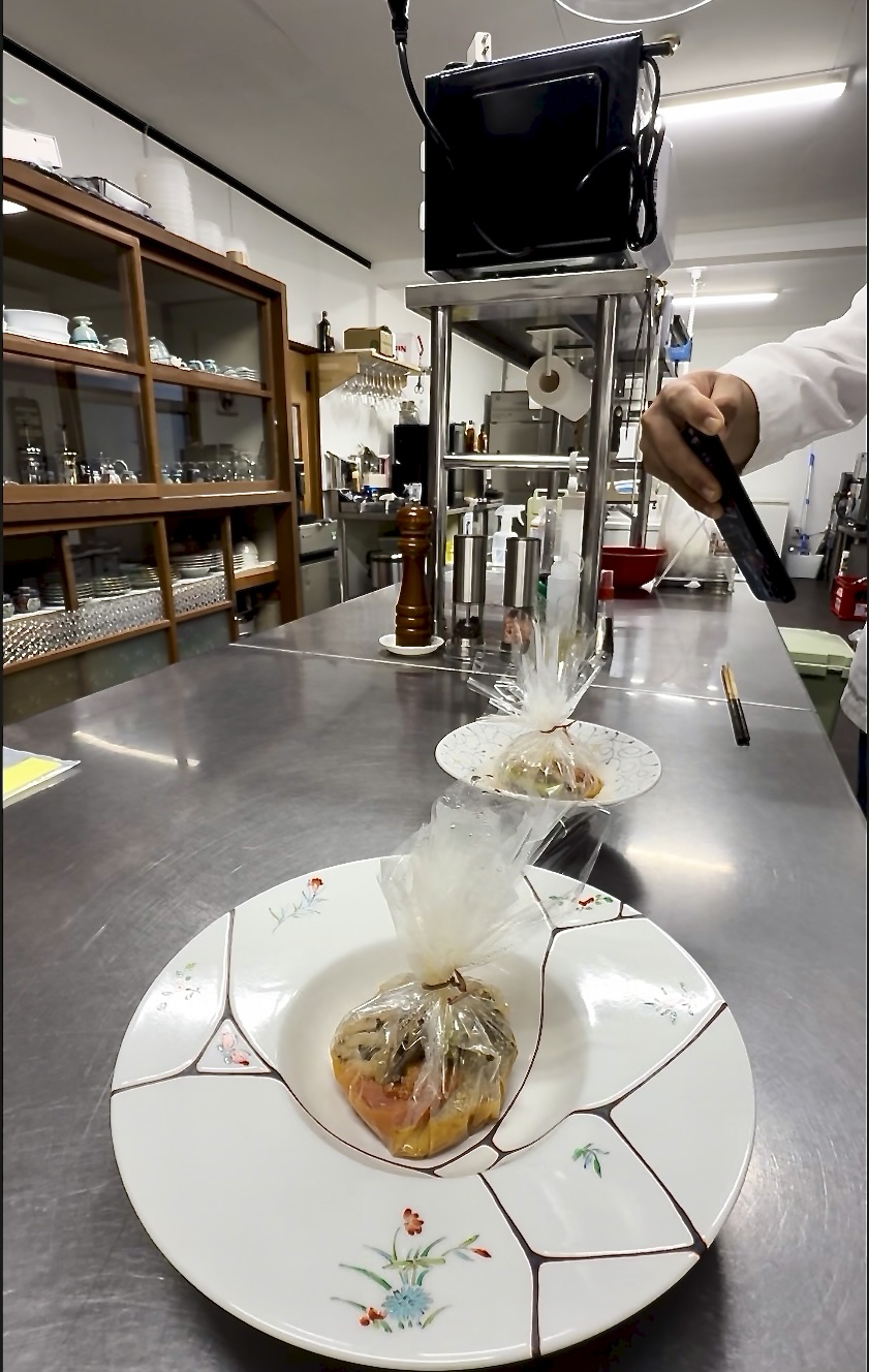 シェフの巡回: 作業台の間を静かに巡回。無駄な言葉は少なく、「ここはもう少し火を強く」「包丁の角度が違う」と、的確で厳しくも温かい指導が入ります。その一言二言で、料理が劇的に変わる瞬間こそ、「道場」の醍醐味です。